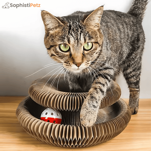 The circular, never-ending ball track provides nonstop play, while the shape-shifting design lets your cat twist, flip, spin, and scratch for hours!